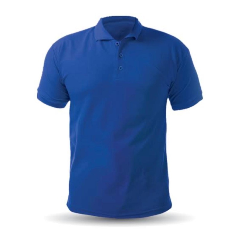 Kısa kollu polo yaka tişört: mavi renkli olup, herhangi bir arma, model, resim, desen içermez.